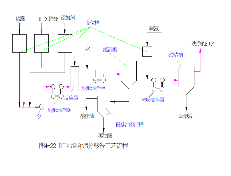 焦化粗苯精制主要有酸洗精制和加氢精制工艺,酸洗法仍在发展中国家被大量采用,酸洗精制由于具有工艺简单、操作灵活、设备简单、材料易得和常温常压运行等优点,目前国内中小型焦化厂仍在应用,但其工艺落后、产品质量低、无法与石油苯竞争,而且收率低、污染严重,产生的废液很难处理。在发达国家都已采用加氢精制方法,产品可达到石油苯的质量标准。国内有很多企业已建成投产或正在建设粗苯加氢装置。20世纪80年代上海宝钢从国外引进了第一套Litol法高温加氢工艺,90年代石家庄焦化厂从德国引进了第一套K.K法低温加氢工艺,1998年宝钢引进了第二套K.K法加氢工艺,还有很多企业正在筹建加氢装置。随着对产品质量和环保的要求越来越高,粗苯加氢工艺的应用是大势所趋。
